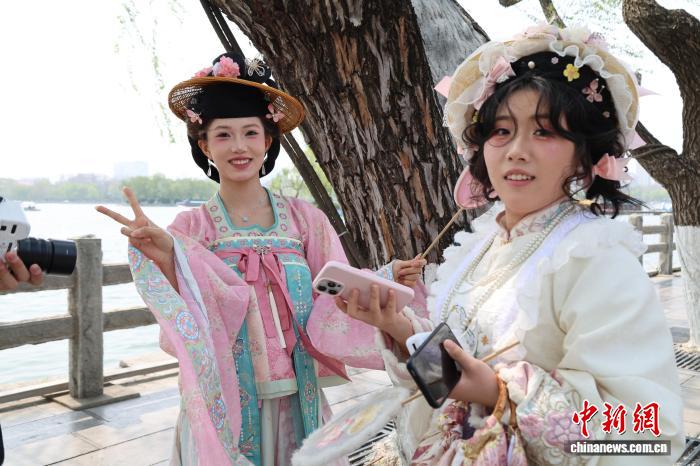 芙蓉花神走秀现场。刘宇 摄 举动现场古韵全体,“10两花神”走秀冷艳明相,浩繁汉服喜好者沉迷式互动挨卡,活泼表现古代花晨节的俗致风味。到场原次举动的“10两花神”中的芙蓉花神饰演者陶凝道:“芙蓉花是百花仙姝之1,尔的妆制衣饰参照了‘仙人壁绘图’,尔感应能够传启中华良好守旧文明,是件十分值得傲慢的工作。” “这日正在年夜亮湖散章十分成心义,也许领会每月的代替花草,也能够动员尔们转遍年夜亮湖的每个景面。”前去玩耍的济北市平易近赵冰鑫道。